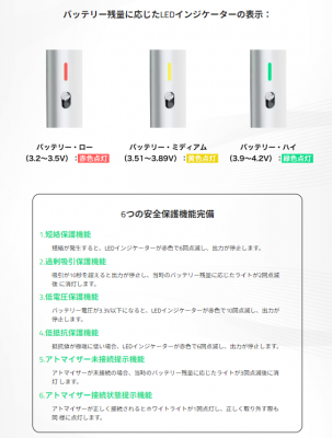 本体にはボタンが一切なく、吸い込むと自動でヒーターが過熱します